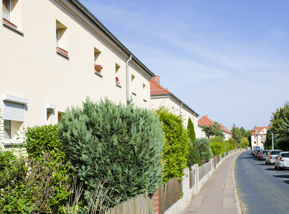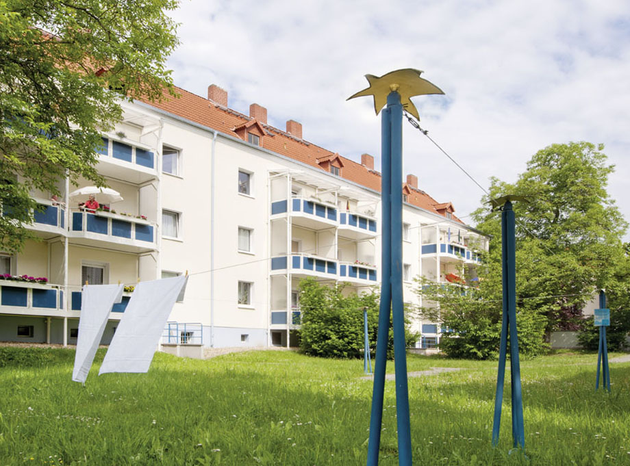 Dieser Wohnungsbestand grenzt an die in den letzten 10 Jahren durch die Genossenschaft privatisierten Einfamilienhäuser oder direkt an die Parkanlage. Jedes unserer Wohngebiete erfüllt den Anspruch „Zentral wohnen in der Stadt – ruhig wohnen wie auf dem Land“.